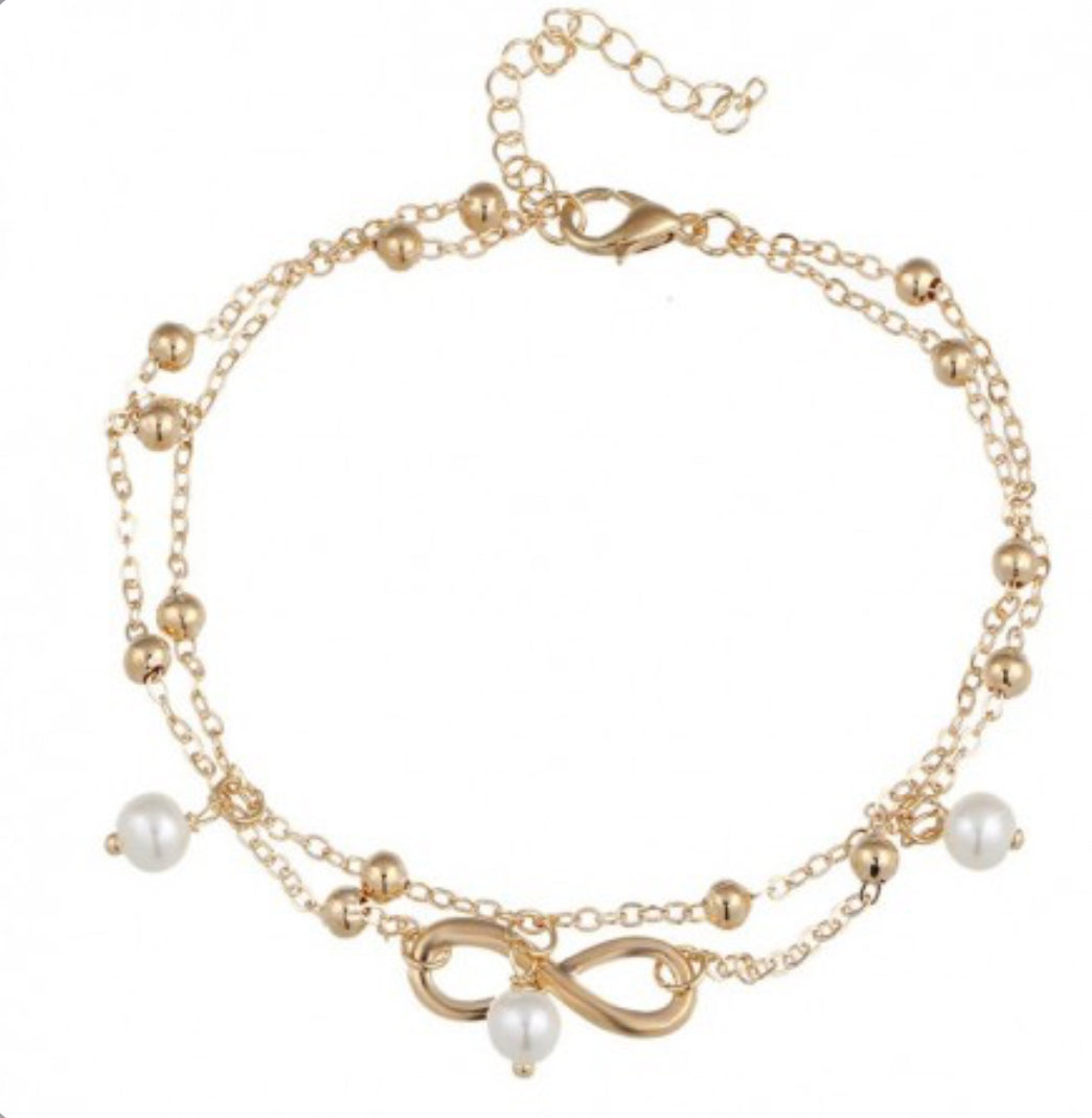 Bransoletka złota podwójna z nieskończonością i perłami