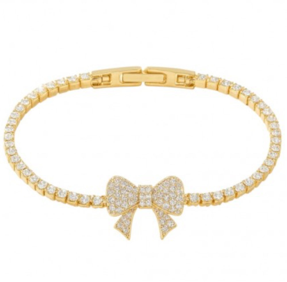 Odkryj romantyczny urok z naszą wyrafinowaną bransoletką łączącą lśniące cyrkonie z delikatną kokardką. Ta wyjątkowa bransoletka łączy w sobie klasyczną elegancję z romantycznym designem, tworząc biżuterię, która przyciąga wzrok i podkreśla Twoją kobiecość.