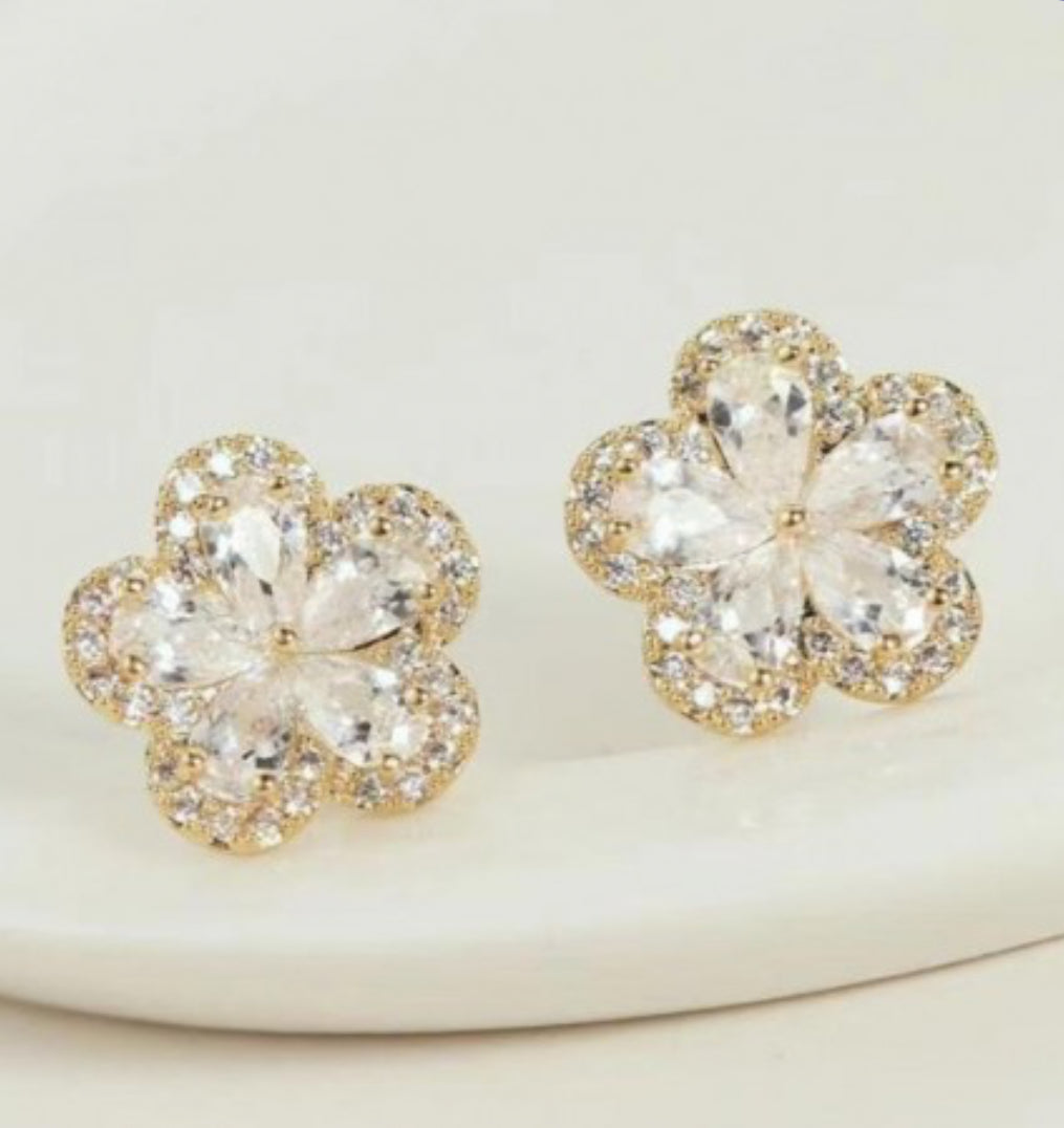 Odkryj romantyczny urok z naszymi wyrafinowanymi kolczykami w kształcie kwiatków wysadzanych białymi cyrkoniami. Te wyjątkowe kolczyki łączą w sobie delikatny design z luksusowym wykończeniem, tworząc biżuterię, która przyciąga wzrok i podkreśla Twoją kobiecość.