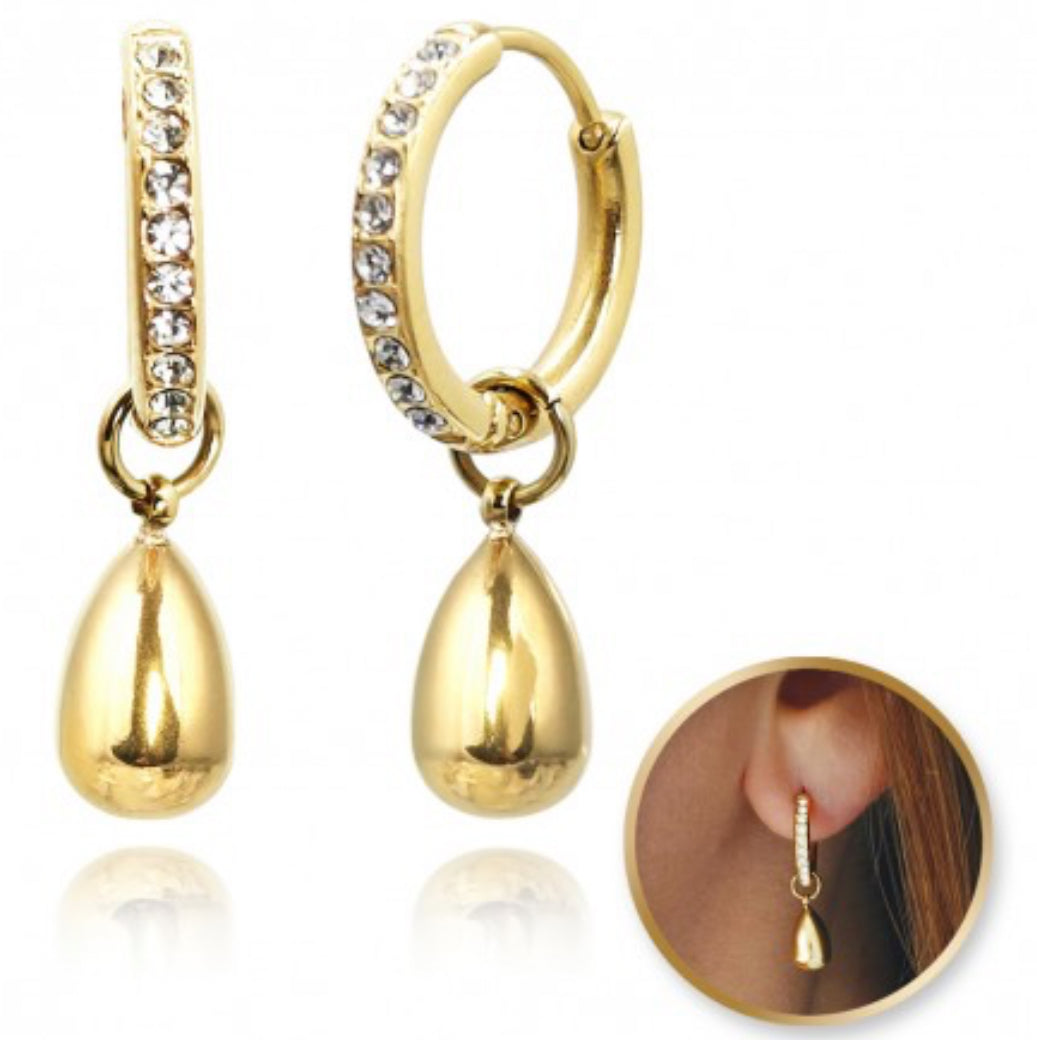 Te kolczyki to doskonały wybór dla kobiet, które cenią luksusowy styl i uwielbiają przyciągać spojrzenia. Połączenie lśniących cyrkonii z gładką złotą kroplą tworzy harmonijną kompozycję pełną blasku i elegancji.